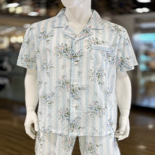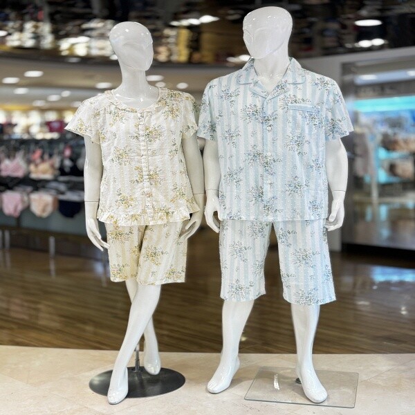 WP8861R MP8861B_플라워 엠보싱 면 반팔 커플잠옷세트