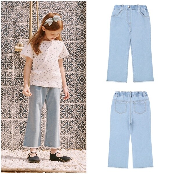 밝고 발랄한 느낌을 주는 시원한 스카이 블루 컬러의 부츠컷 데님 팬츠입니다.