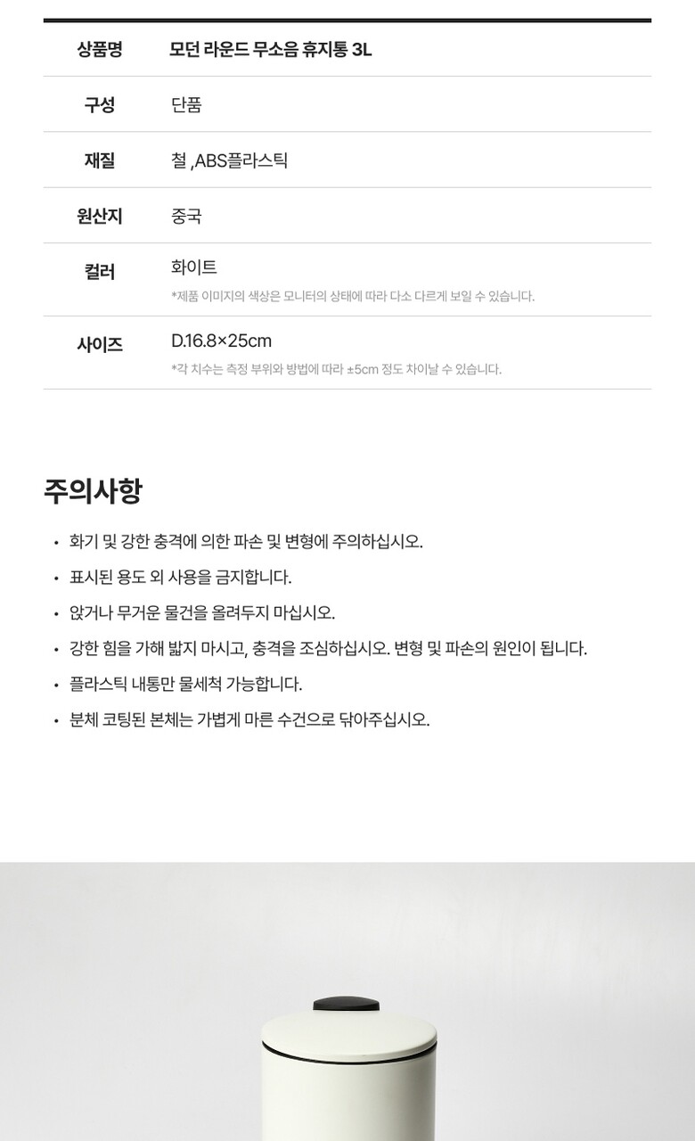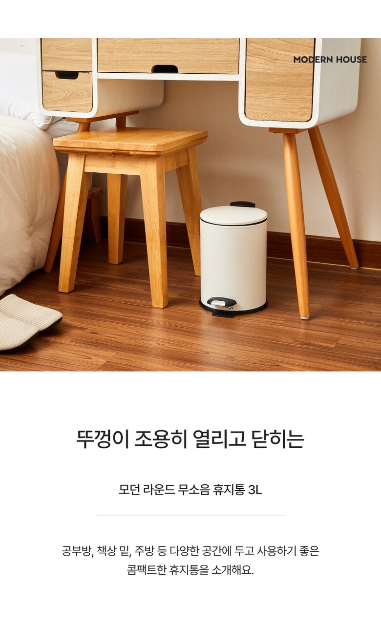 모던하우스 모던 라운드 무소음 휴지통 3L CL1324016