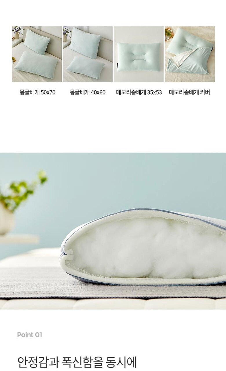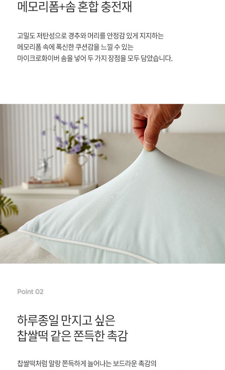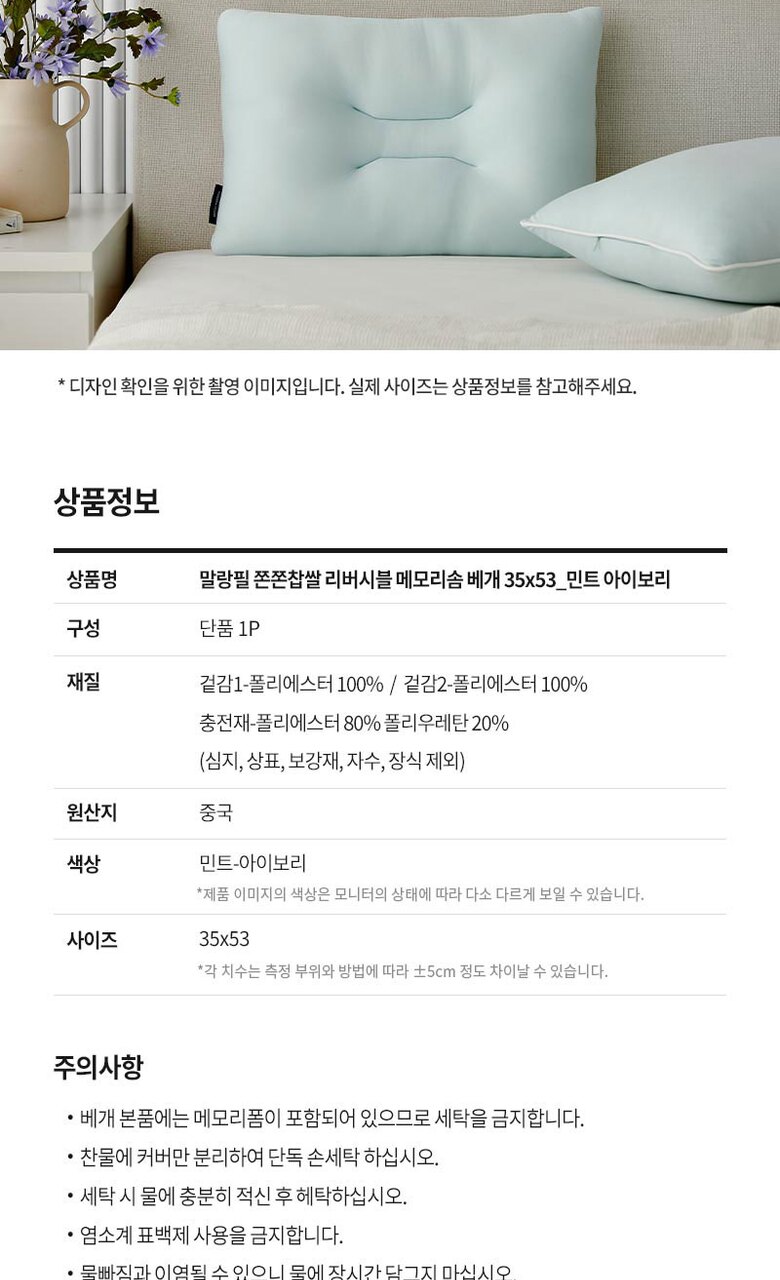 모던하우스 말랑필 쫀쫀찹쌀 리버시블 메모리솜 베개 35x53_민트 아이보리 FP1124022