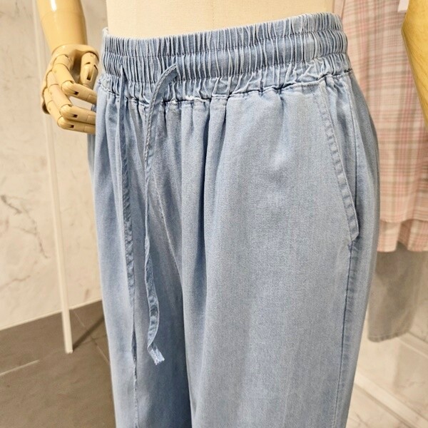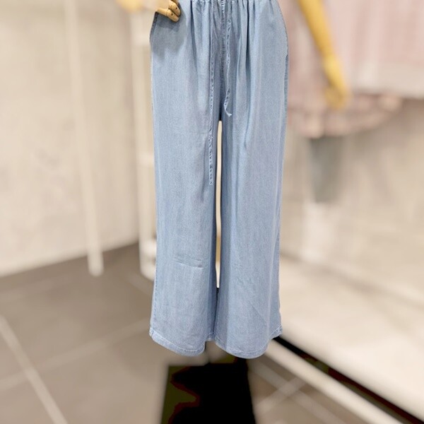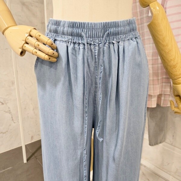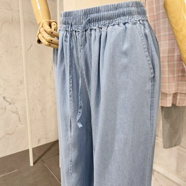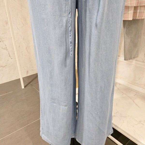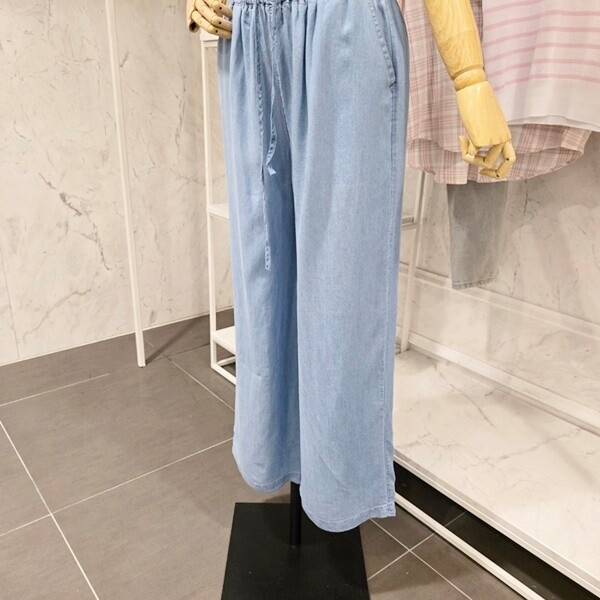 F5BPT013A_블루 밴딩 와이드 팬츠