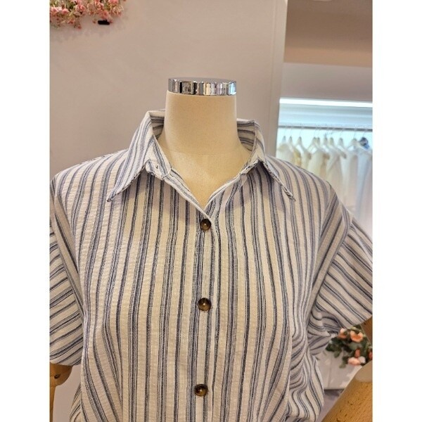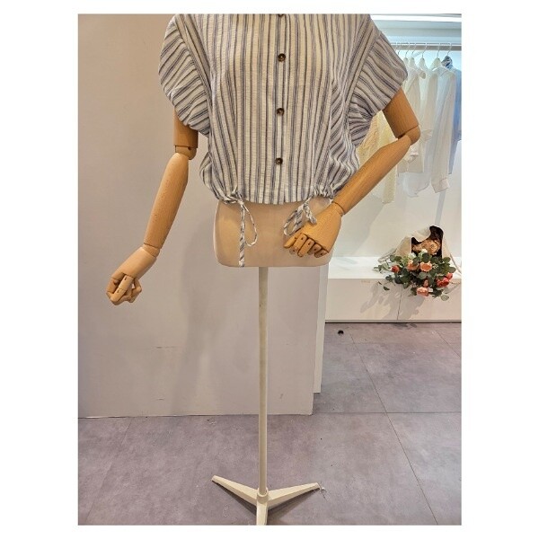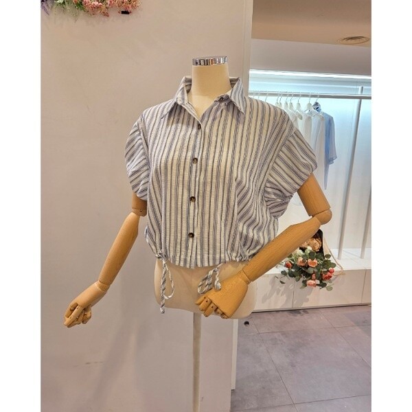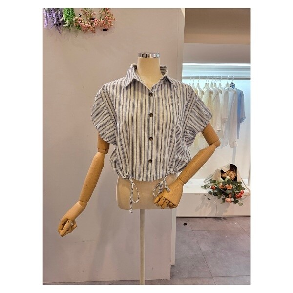CP5WBL48_캡소매 줄지 스트링 셔츠