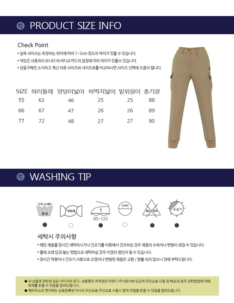 골피아 여성 발목트임 카고 조거 골프바지 APF3JN8012