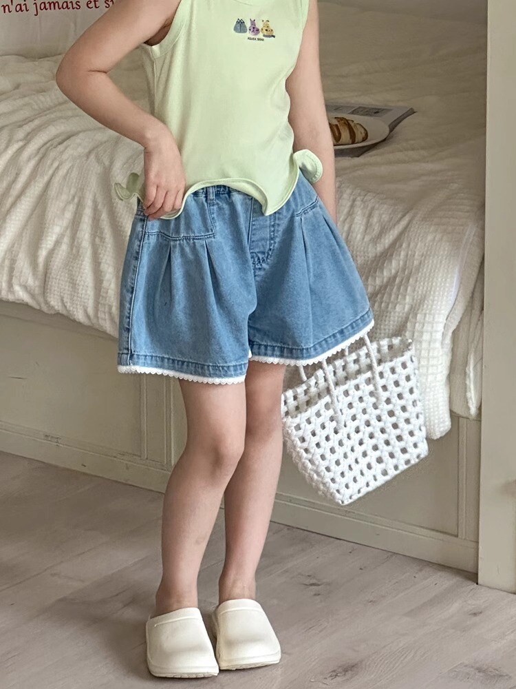 [예약발송] 와이드 크롭 데님 쇼츠 팬츠 R14483