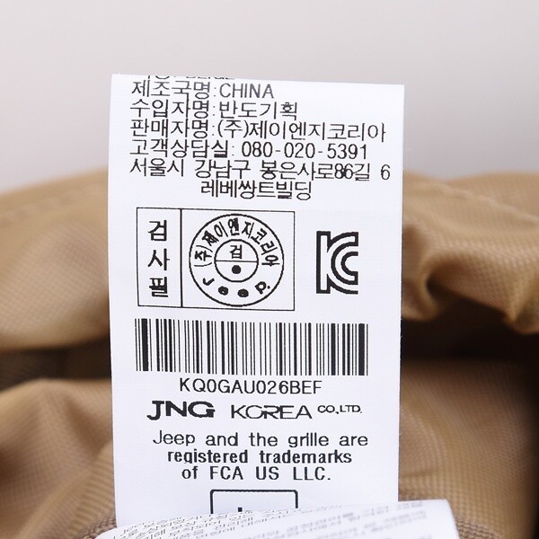 | 1. 제품 소재 (섬유의 조성 또는 혼용률을 백분율로 표시, 기능성인 경우 성적서 또는 허가서) | 겉감-폴리에스터100% 안감-나일론100% 배색-폴리에스터100% |