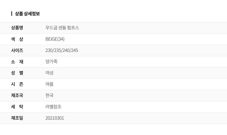 | 1. 제품 소재 (운동화인 경우에는 겉감, 안감을 구분하여 표시) | 양가죽 |