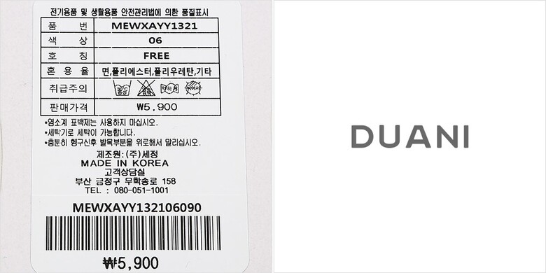 | 2. 소재 | 겉감:면,폴리에스터,폴리우레탄,기타 |