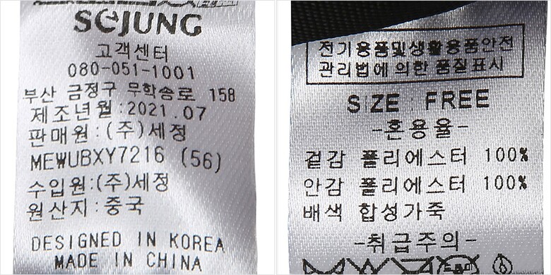 | 7. 취급시 주의사항 | 케어라벨 참조 |