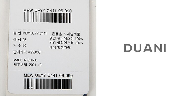 | 2. 소재 | 겉감-폴리에스터100% 안감-폴리에스터100% 배색-합성가죽 |