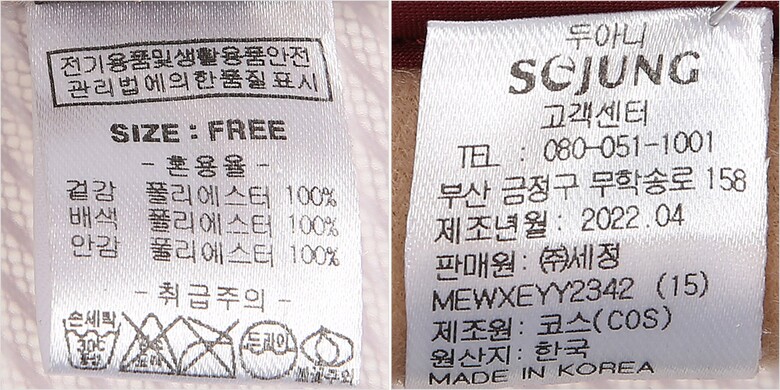 2. 소재 | 겉감-폴리에스터100% 안감-폴리에스터100% 배색-폴리에스터100% |