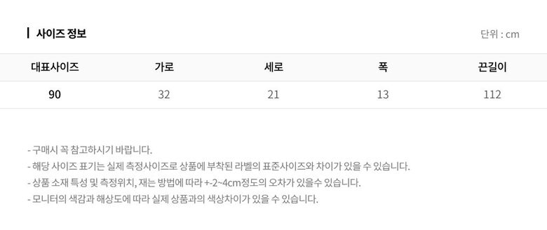 | 2. 소재 | 겉감:합성가죽 안감:폴리에스터100% 배색:합성가죽 |