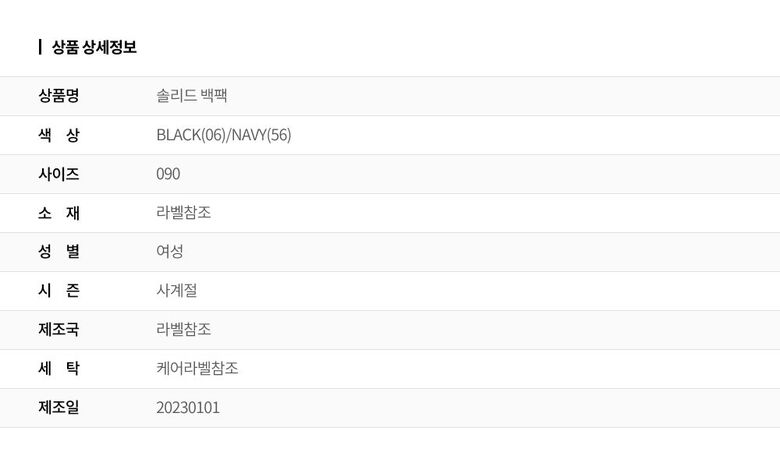 | 3. 색상 | 색상:BLACK(06)/NAVY(56) |