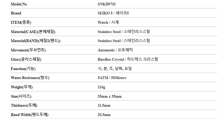 | 3. 제조사 | 세이코5/MACHO-병행수입 |