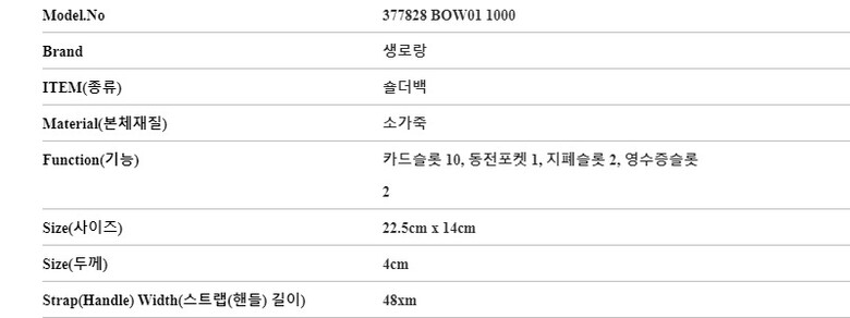 | 1. 종류 | 크로스백 |