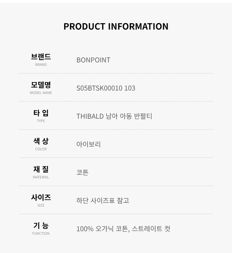봉쁘앙 S05BTSK00010 103 THIBALD 남아 아동 반팔티
