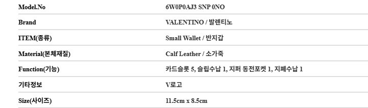 발렌티노 6W0P0AJ3 SNP 0NO (P0AJ3 SNP 0NO) 가라바니 V로고 반지갑