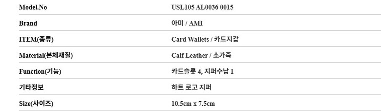 AMI USL105 AL0036 0015 하트 로고 지퍼 카드지갑