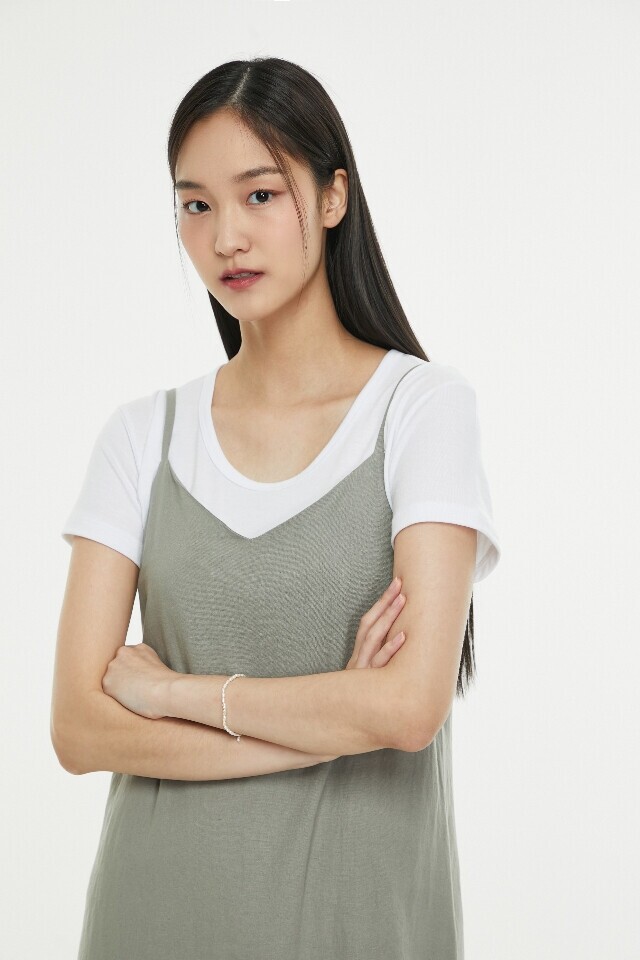 레이어드 끈 뷔 스 티 에 원피스 ~