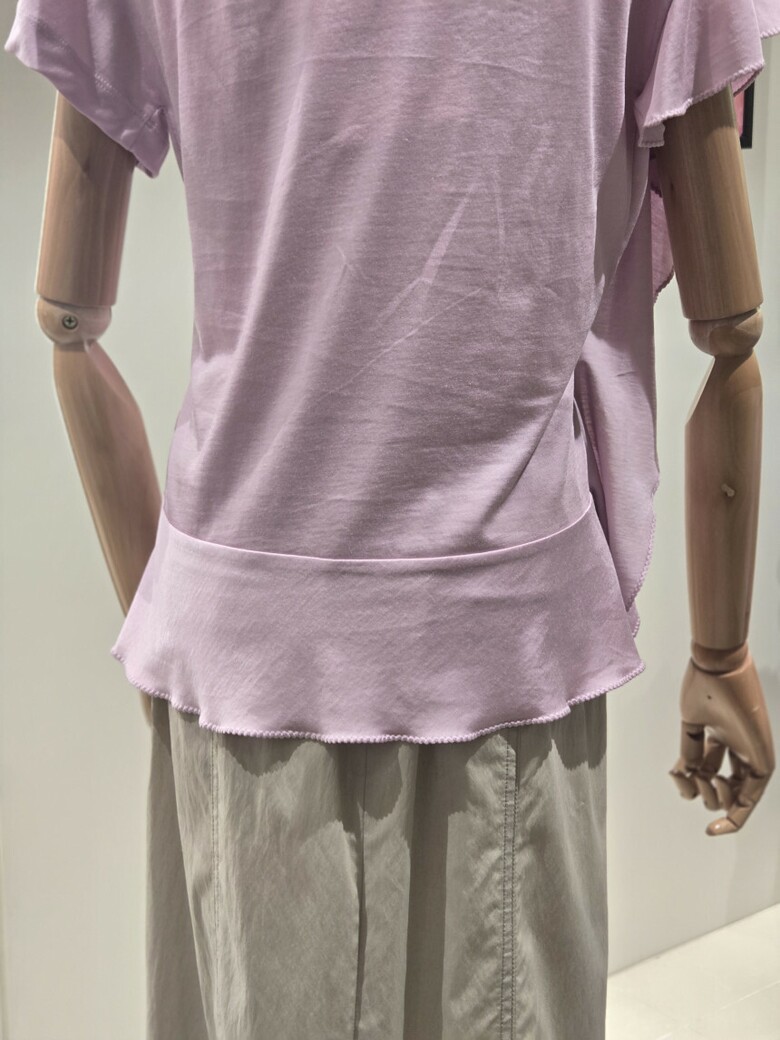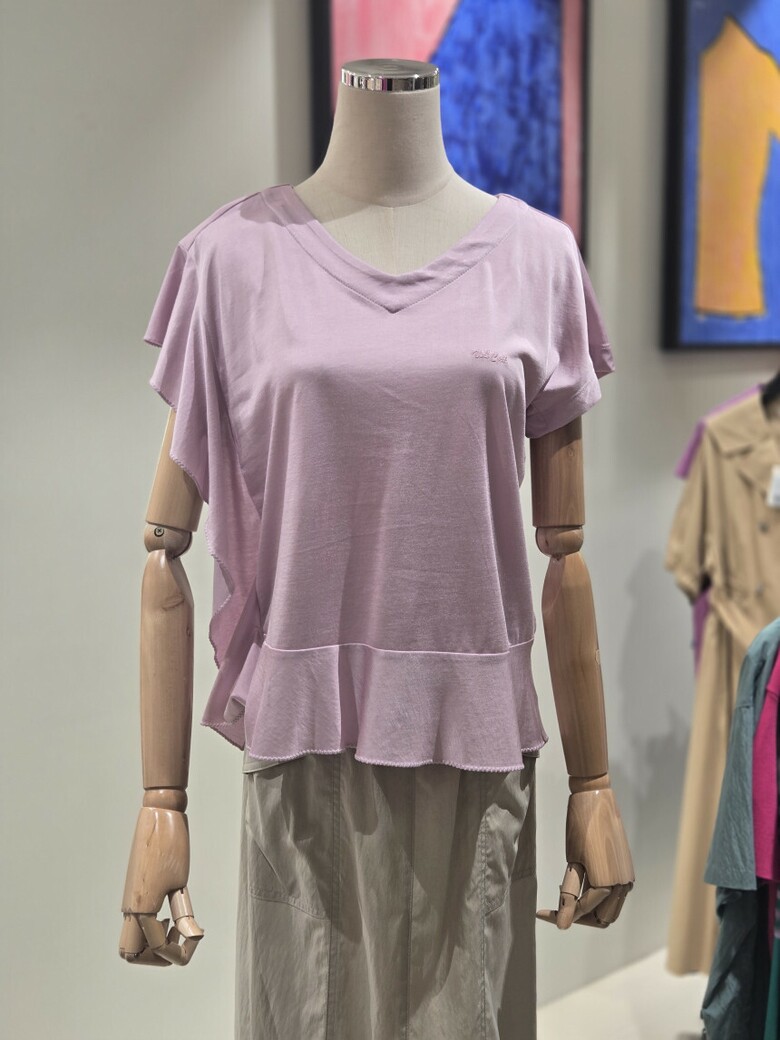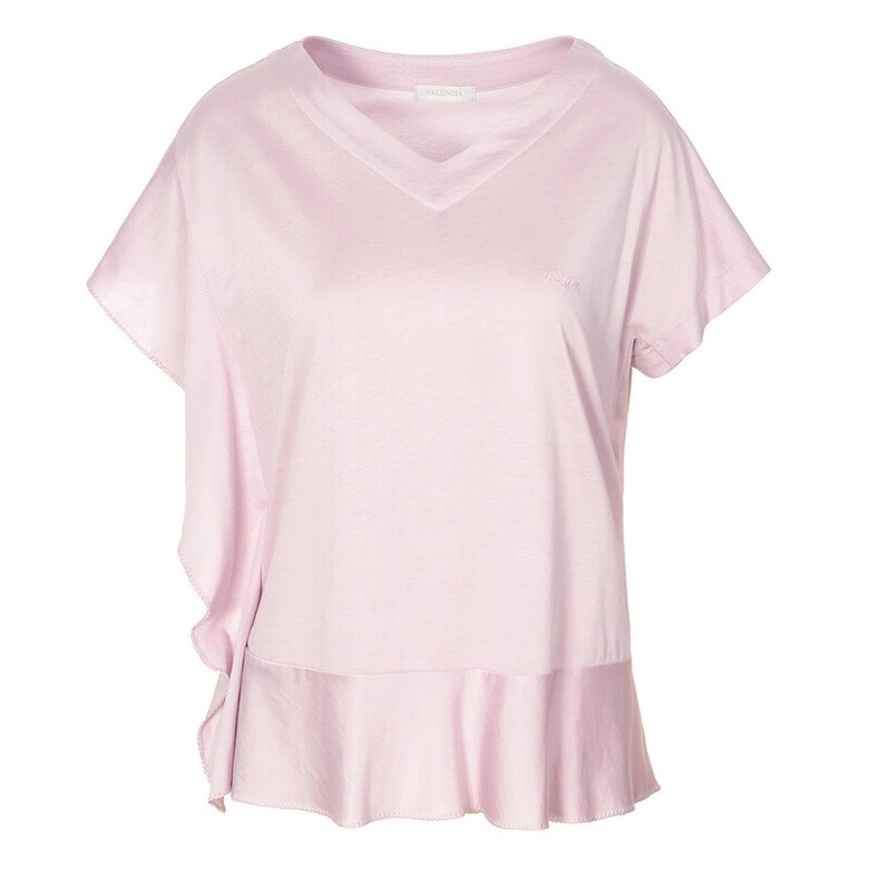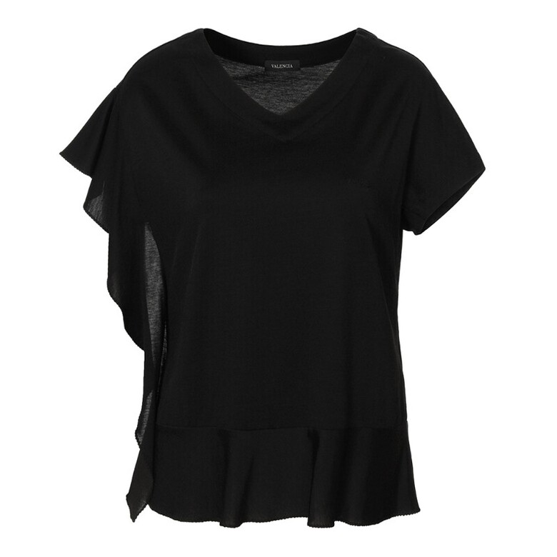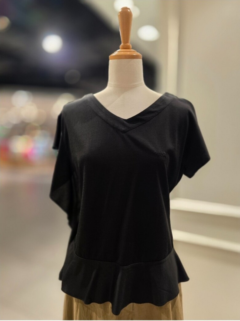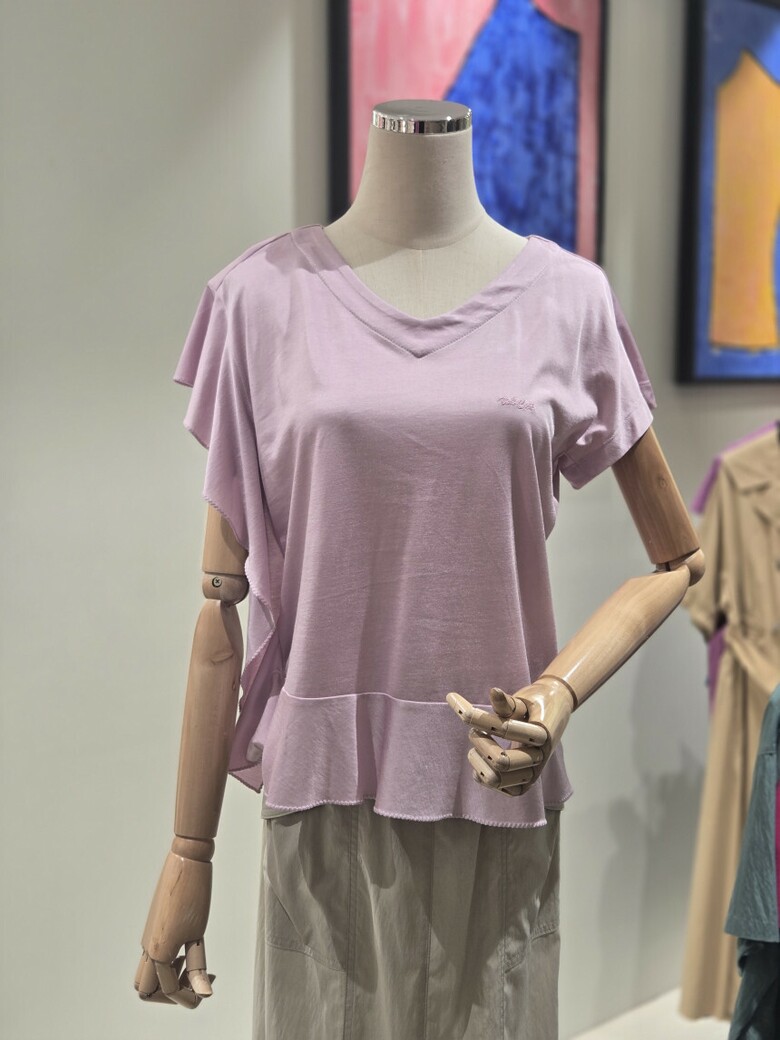 [발렌시아]브이넥 러플 배색 반팔 티셔츠 256MC32