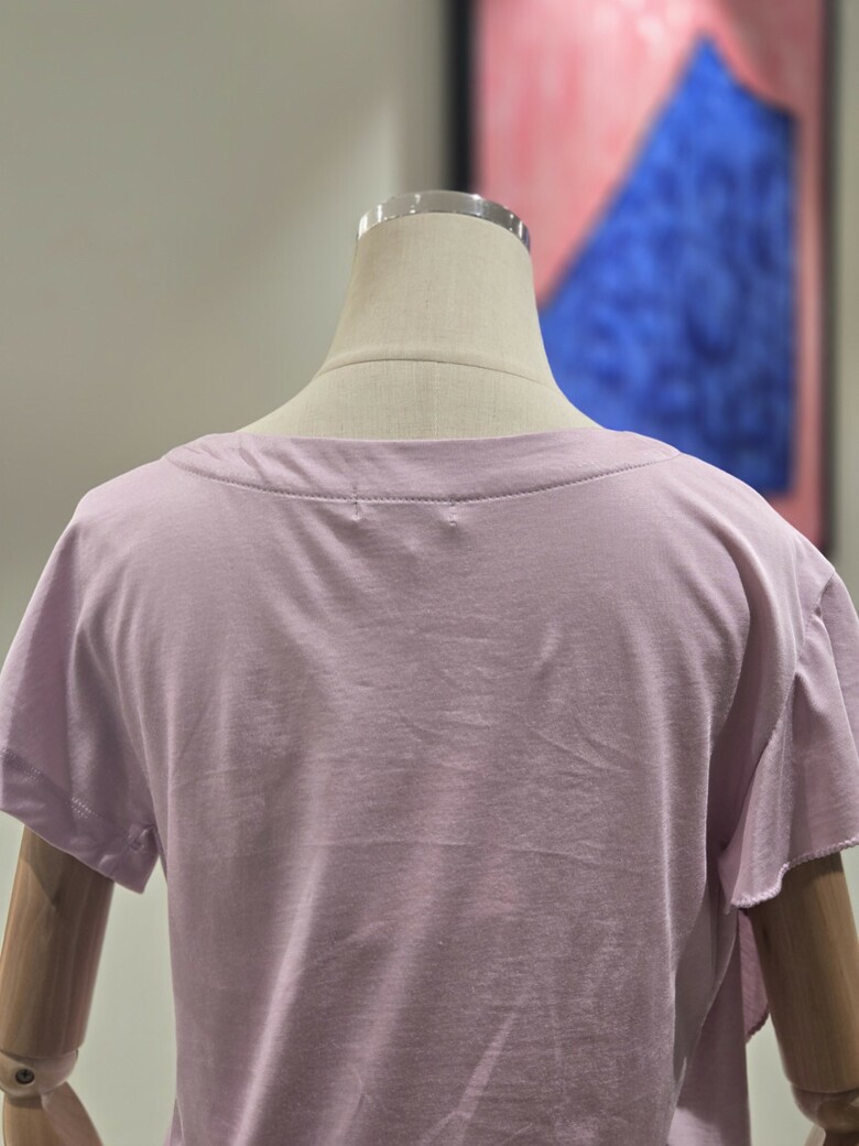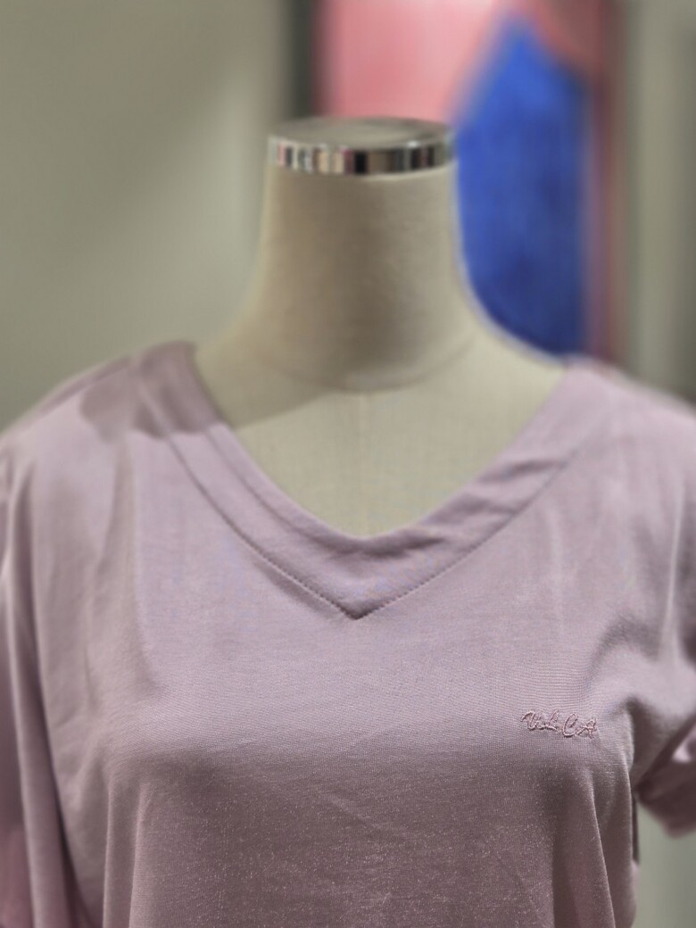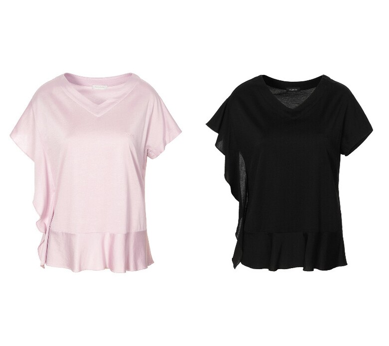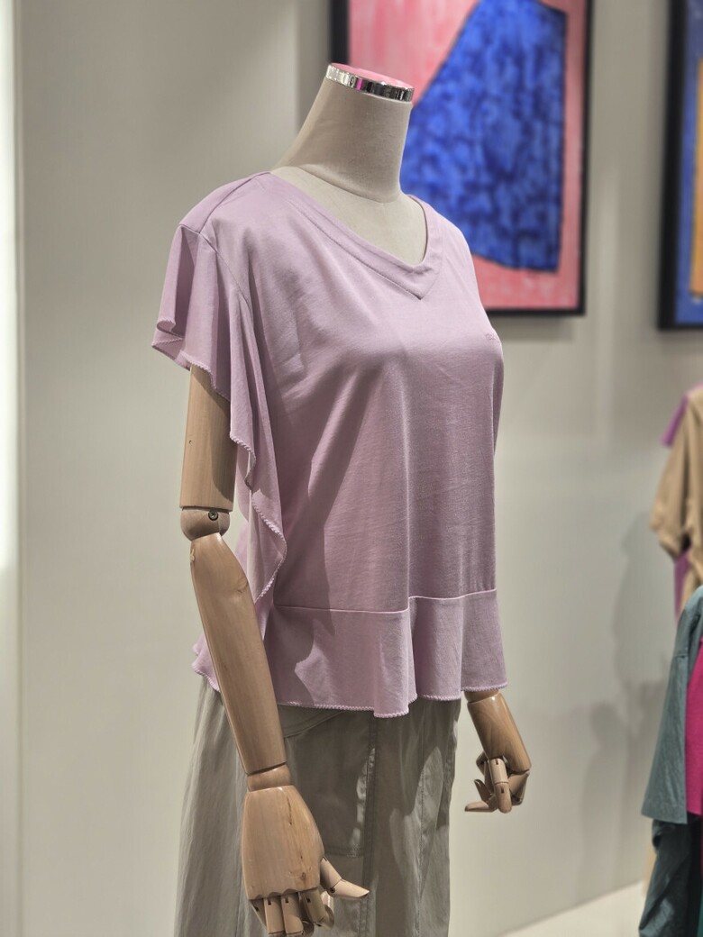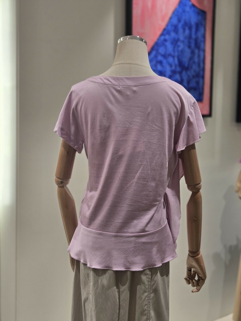 [발렌시아]브이넥 러플 배색 반팔 티셔츠 256MC32