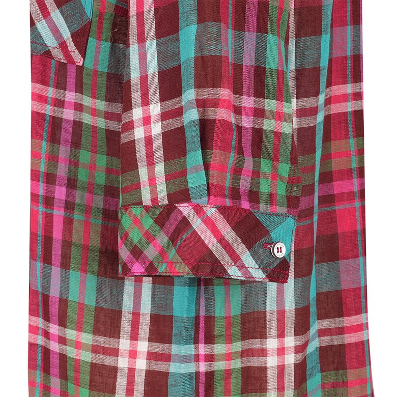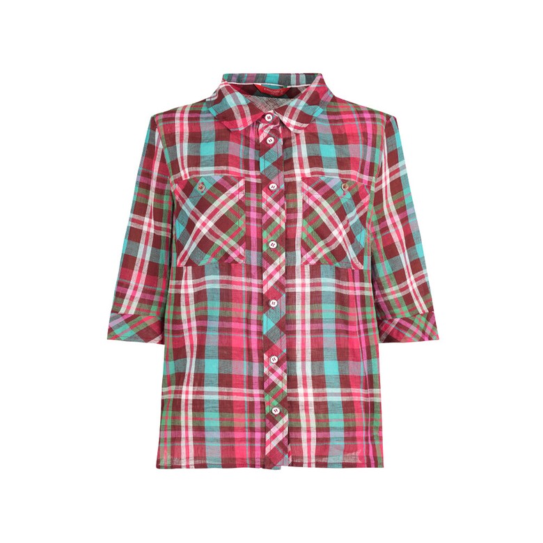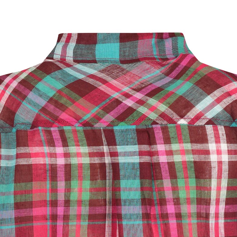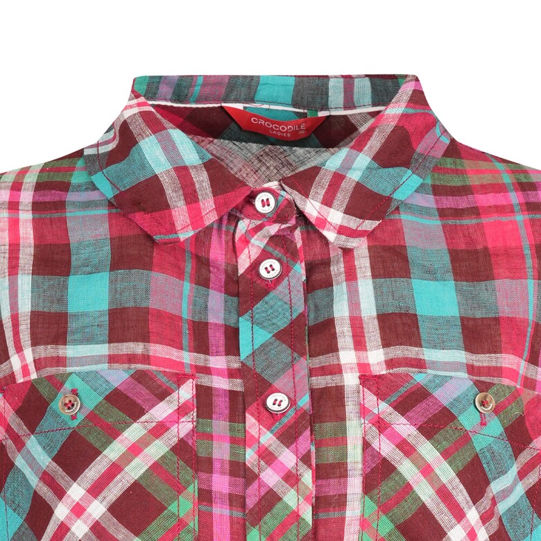 체크 린넨 혼방 소재의 반팔 풀오픈 셔츠블라우스. 가슴 포켓 디테일로 캐쥬얼한 느낌 더했으며 여름철에 착용하기 좋은 아이템.