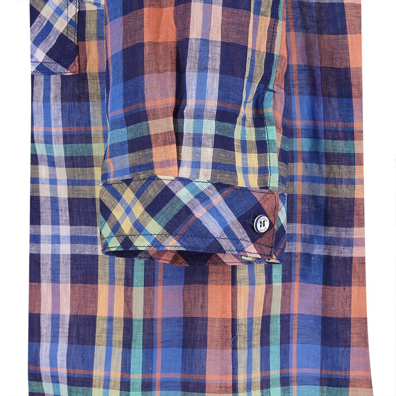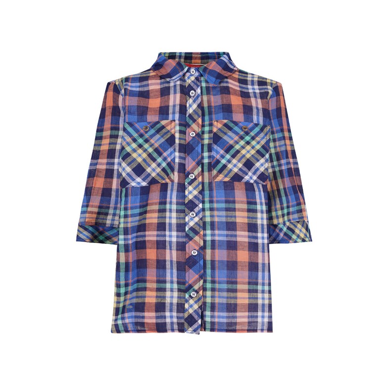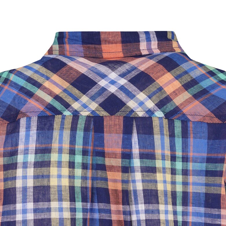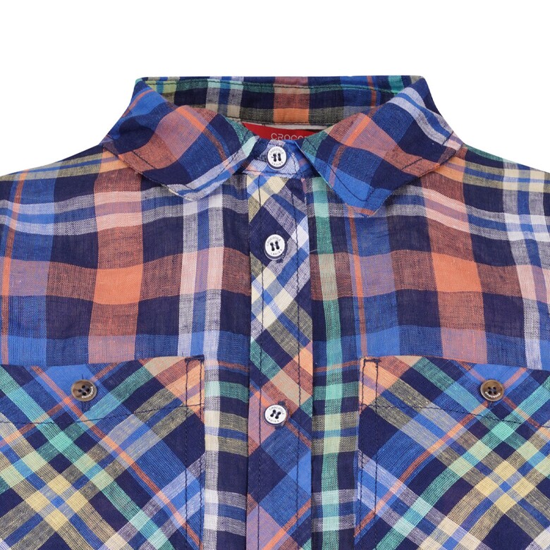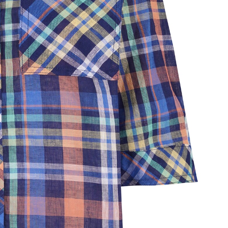 크로커다일레이디 25년 여름 멀티 체크 린넨코튼 5부 소매 셔츠 CLEMBL208