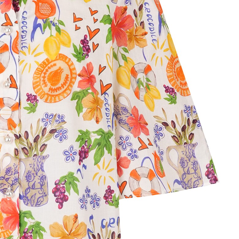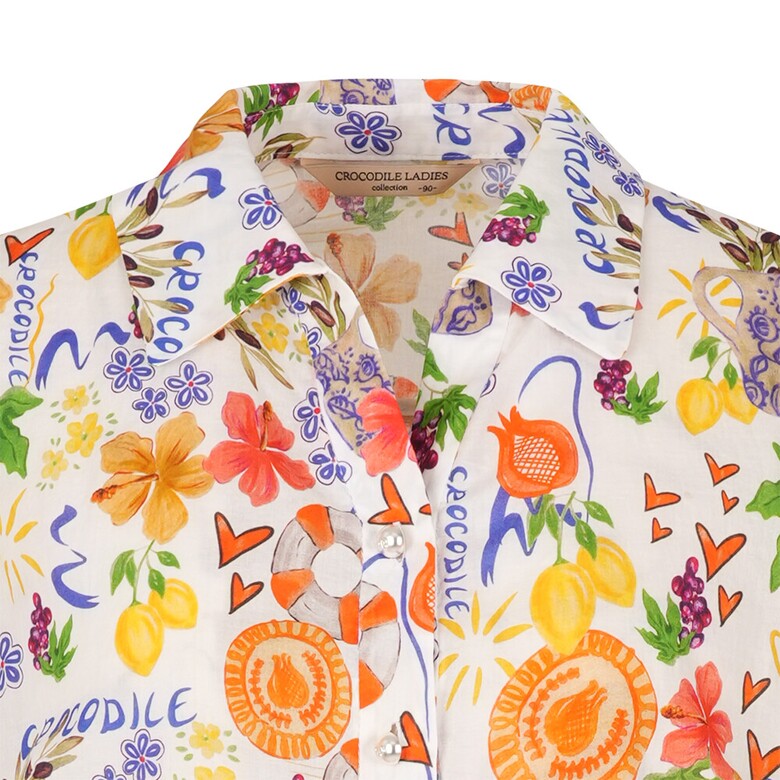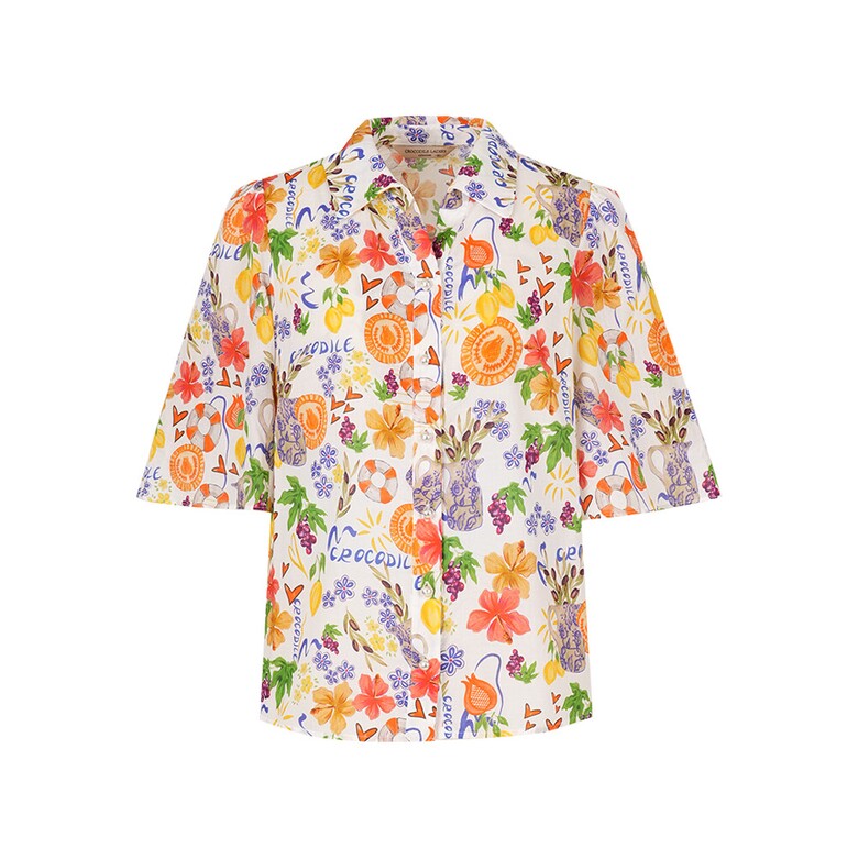 크로커다일레이디 25년 여름 면100% 화사한 풀오픈 셔츠형 5부블라우스 CLEMBL303