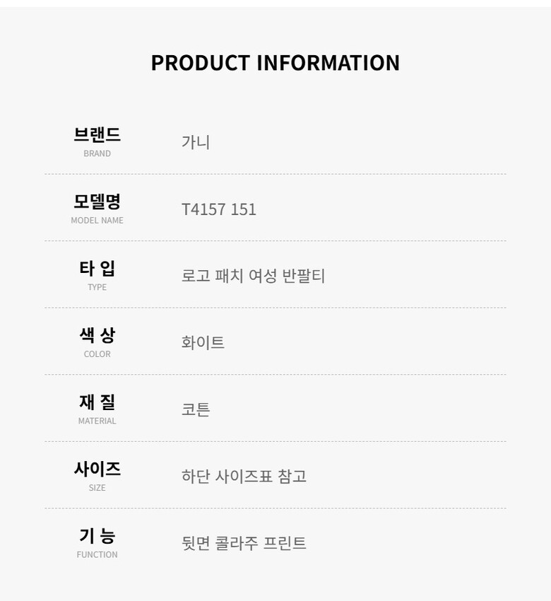가니 반팔 T4157 151 로고 패치 여성반팔티 당일발송