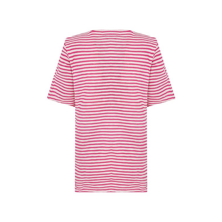스트라이프 원포인트 라운드 티셔츠