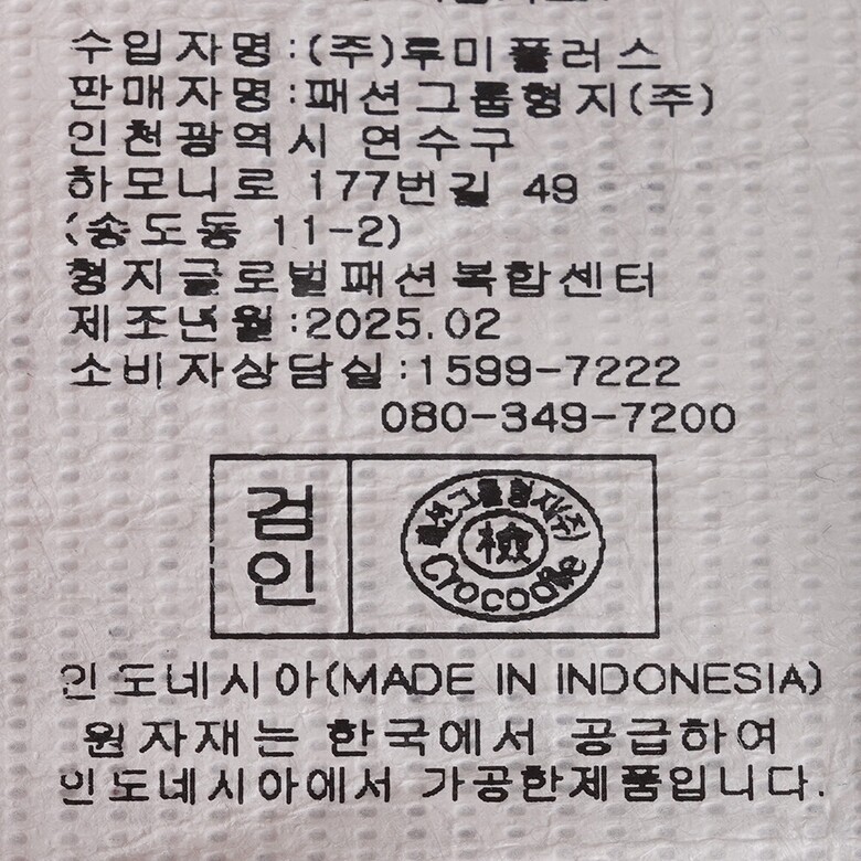 | 1. 제품 소재 (섬유의 조성 또는 혼용률을 백분율로 표시, 기능성인 경우 성적서 또는 허가서) | 상품상세참조 |