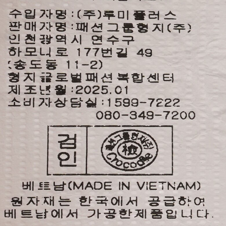 1. 제품 소재 (섬유의 조성 또는 혼용률을 백분율로 표시, 기능성인 경우 성적서 또는 허가서) | 상품상세참조 |