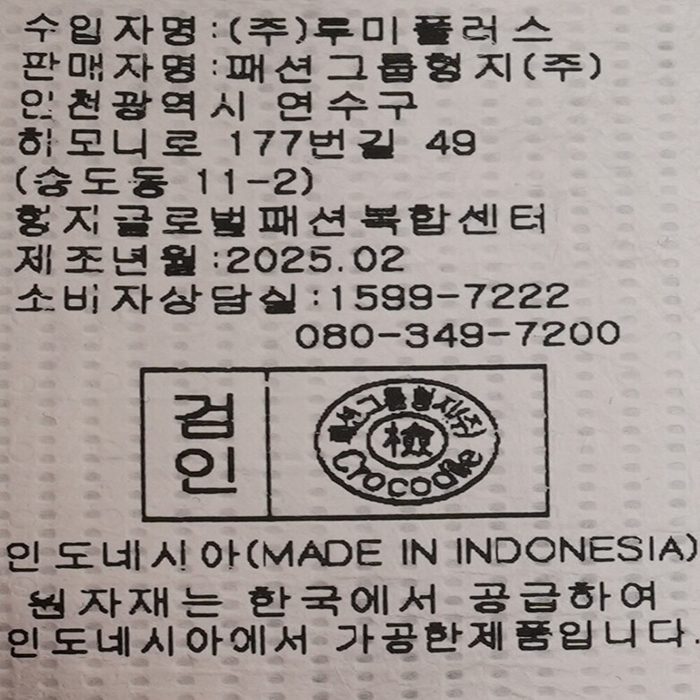 1. 제품 소재 (섬유의 조성 또는 혼용률을 백분율로 표시, 기능성인 경우 성적서 또는 허가서) | 상품상세참조 |