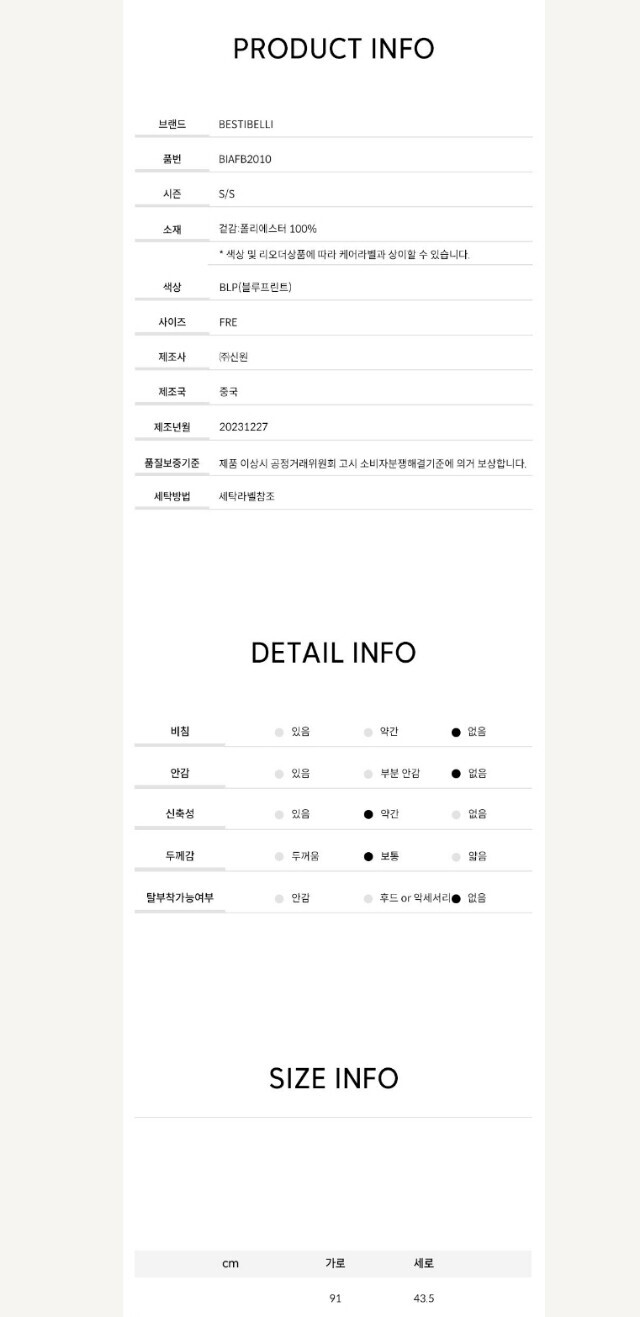 • 처음 배송된 상품상태와 다를 경우(세탁/착용 후 외출하신 경우) 반품이 불가합니다.