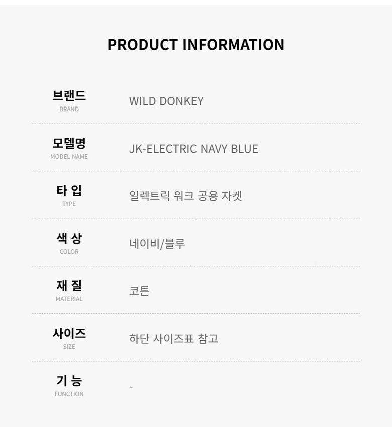 와일드동키 자켓 JK-ELECTRIC NAVY BLUE 일렉트릭 워크 남성자켓 여성자켓 당일발송