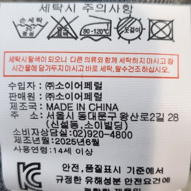 | 1. 제품 소재 (섬유의 조성 또는 혼용률을 백분율로 표시, 기능성인 경우 성적서 또는 허가서) | 상품상세참조 |