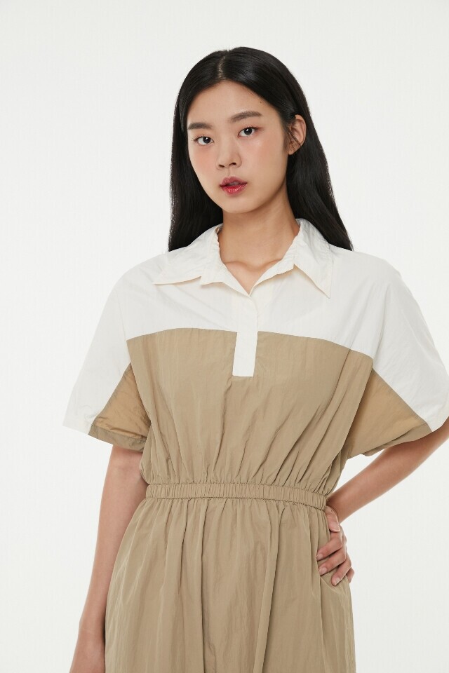 AP2WO646 나일론 투톤 배색 원피스