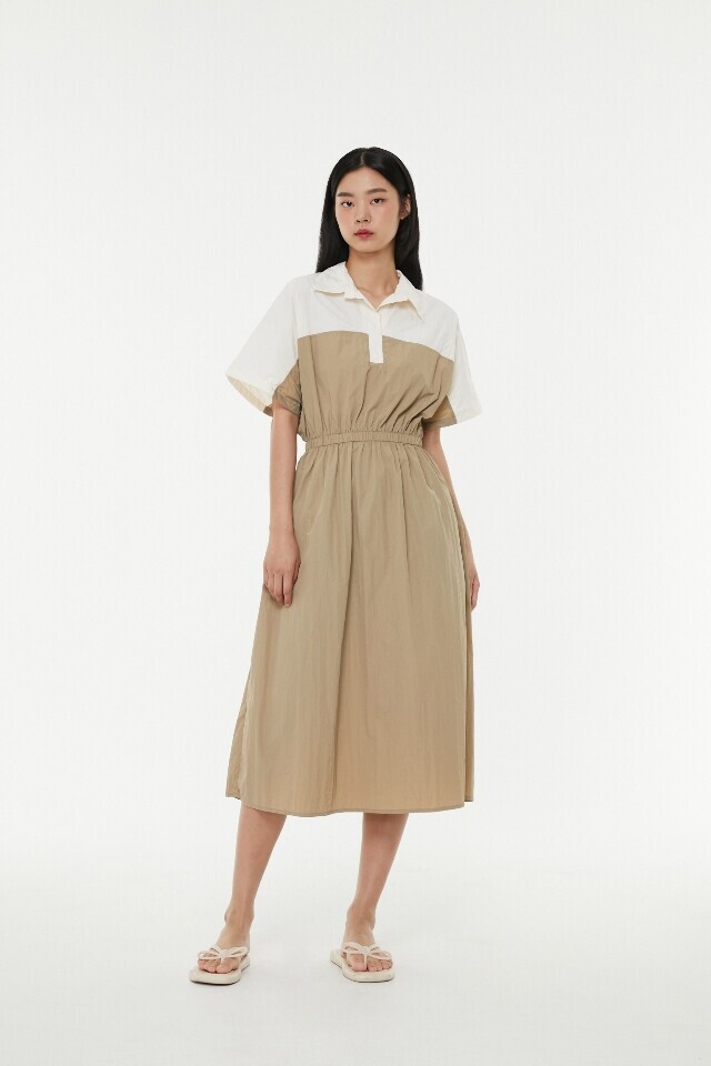 나일론 투톤 배색 원피스 ~