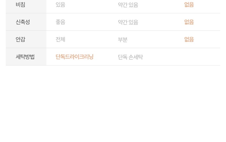 | 6. 세탁방법 및 취급시 주의사항 | 드라이클리닝 |