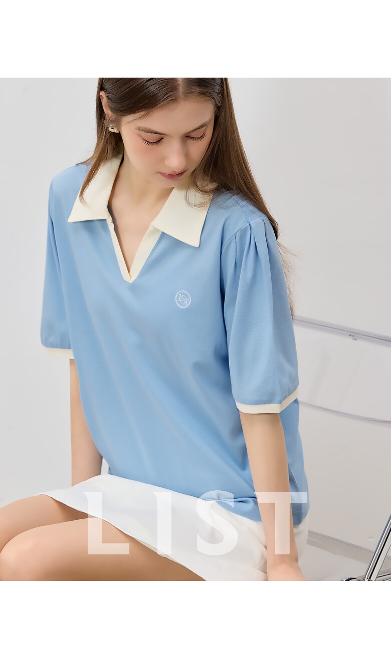 [리스트(LIST)] 경쾌한 코튼 배색 카라 티셔츠 (택가격: 138000원)