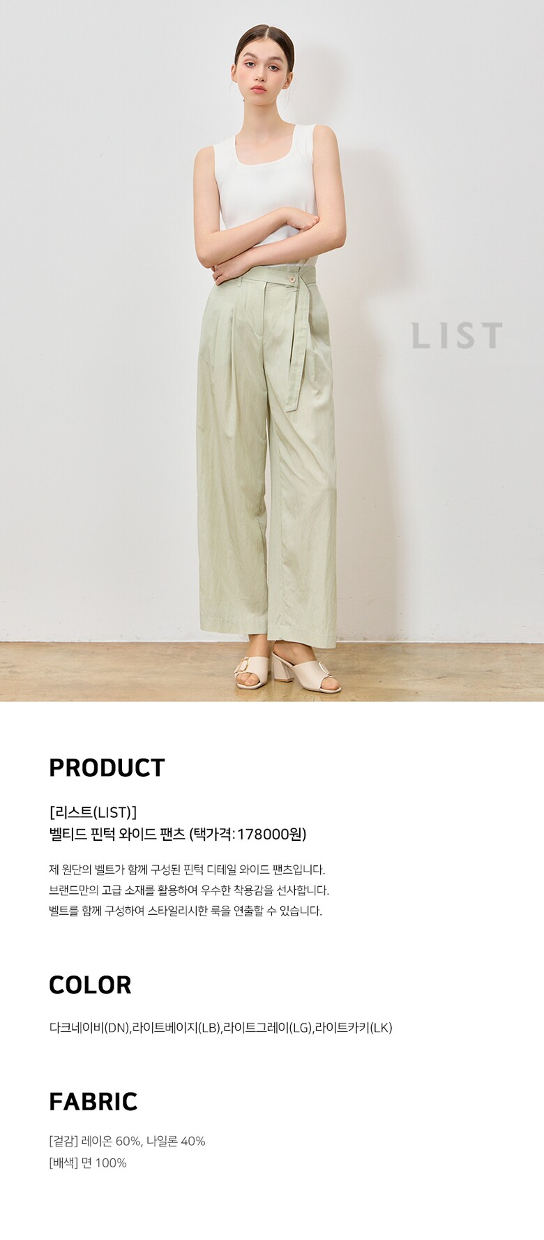 [리스트(LIST)] 고급스러운 벨티드 핀턱 와이드 팬츠 (택가격: 178000원)