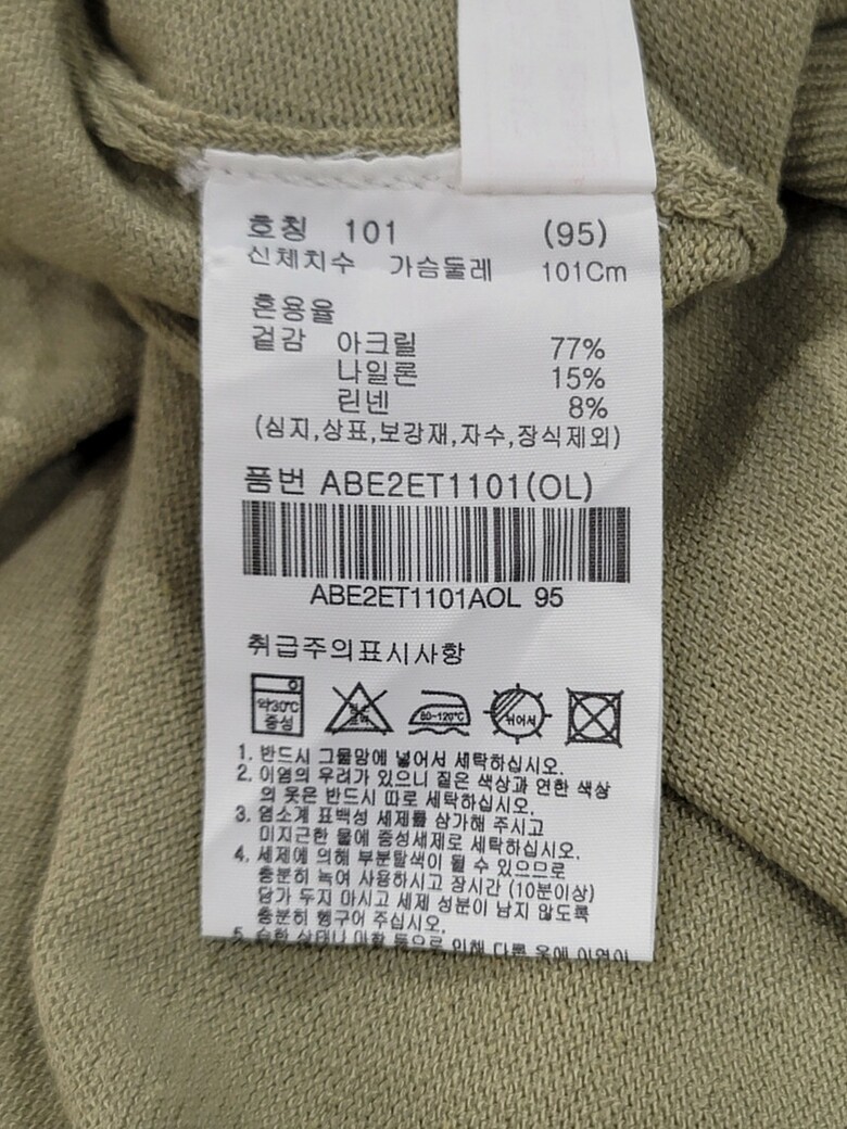 | 1. 제품 소재 (섬유의 조성 또는 혼용률을 백분율로 표시, 기능성인 경우 성적서 또는 허가서) | 겉감:아크릴 77%, 나일론 15%, 린넨 8% |