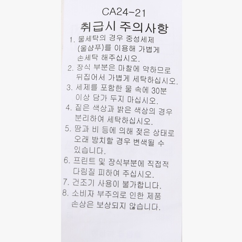 | 6. 세탁방법 및 취급시 주의사항 | 상품상세참조 |