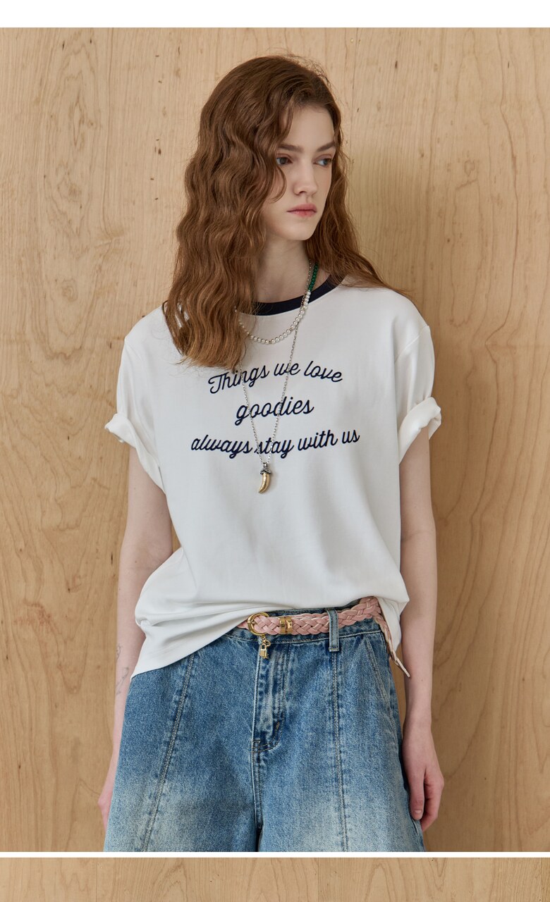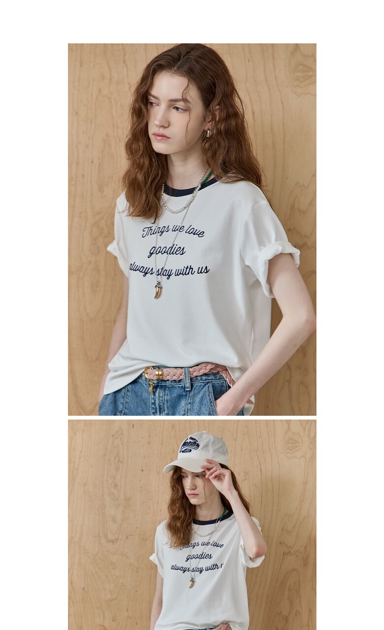 네크라인과 레터링을 동일한 톤으로 매치하여