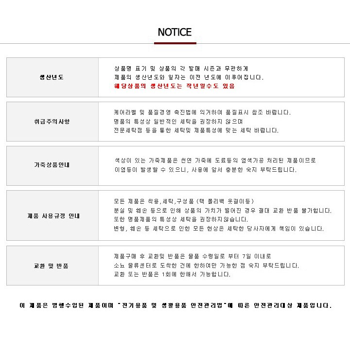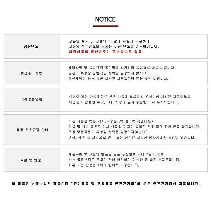 | 6. 세탁방법 및 취급시 주의사항 | 상품상세 참조 |