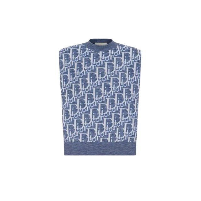 [명품] 디올 자카드 오블리크 니트 조끼 블루 화이트 공용 393M662AT662 C580