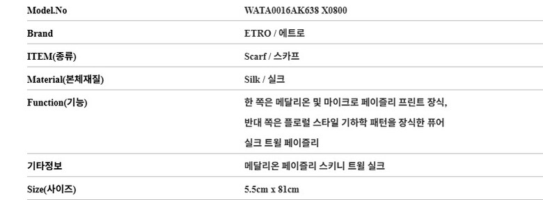 에트로 스카프 WATA0016AK638 X0800 메달리온 페이즐리 스키니 트윌 실크 여성스카프 당일발송