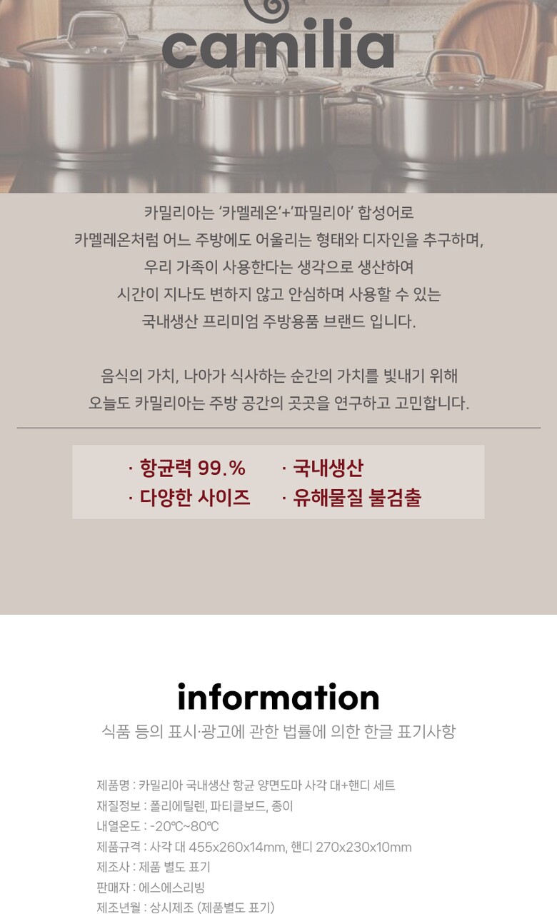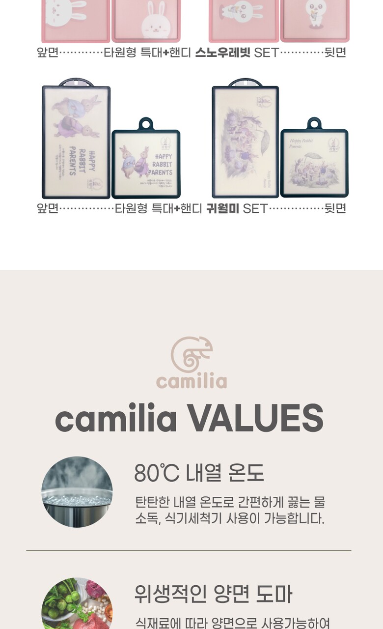 카밀리아 양면도마 사각 2종+시트도마+거치대 세트