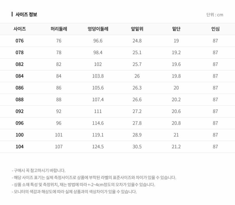 | 6. 세탁방법 및 취급시 주의사항 | 상품상세참조 |
