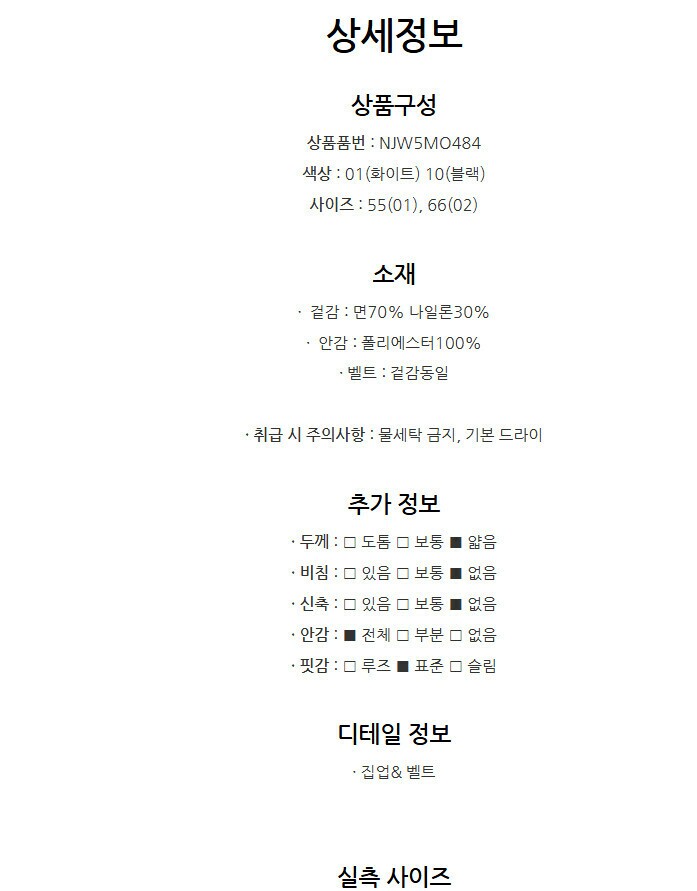• 처음 배송된 상품상태와 다를 경우(세탁/착용 후 외출하신 경우) 반품이 불가합니다.