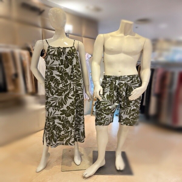 바바라 커플잠옷세트/남성 7부바지, 여성 스트랍원피스 잠옷